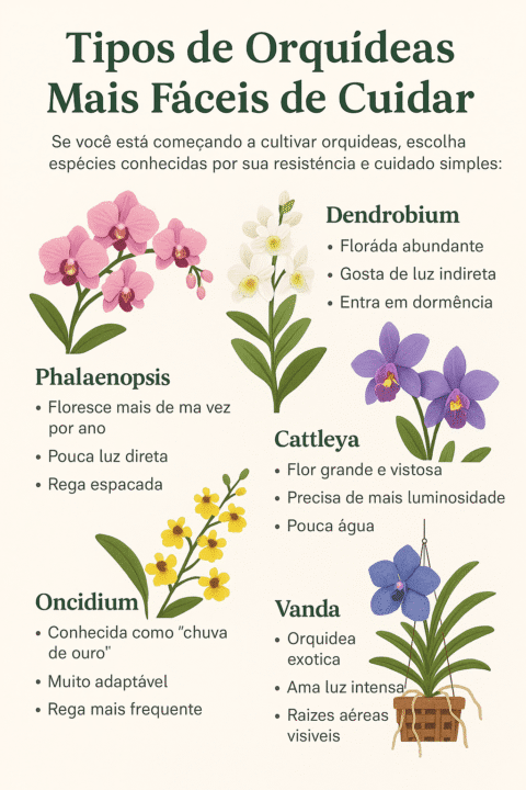 By O Mundo das Orquideas7 de maio de 20250 Comments Tipos de Orquídeas Mais Fáceis de Cuidar Se você está começando no mundo das orquídeas, a escolha da espécie certa pode fazer
